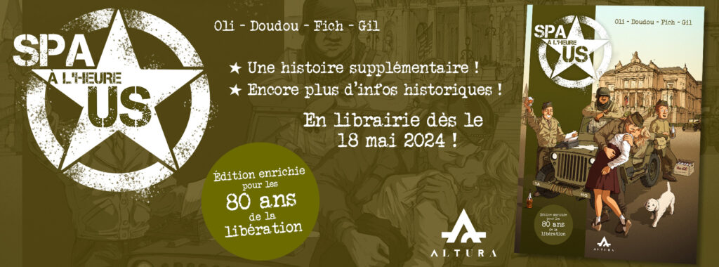 Grâce à Altura Editions, nous avons réédité l’ouvrage en 2024. Mais non content de ressortir le livre, nous l’avons enrichi ! En effet, on y trouve toujours les 4 récits en BD originaux, à savoir « Recreation Center », par Oli, « Mon premier Cola », par Doudou, « Nos héros oubliés », par Fich, et « Chambre Seez », par Gil, mais il y a désormais une histoire supplémentaire : « Le Tigre 332 », racontée et dessinée par Oli, qui relate la capture du tout premier char Tigre II intact par les forces américaines au début de la bataille des Ardennes. Enfin, les pages de documentations ont également été enrichies !